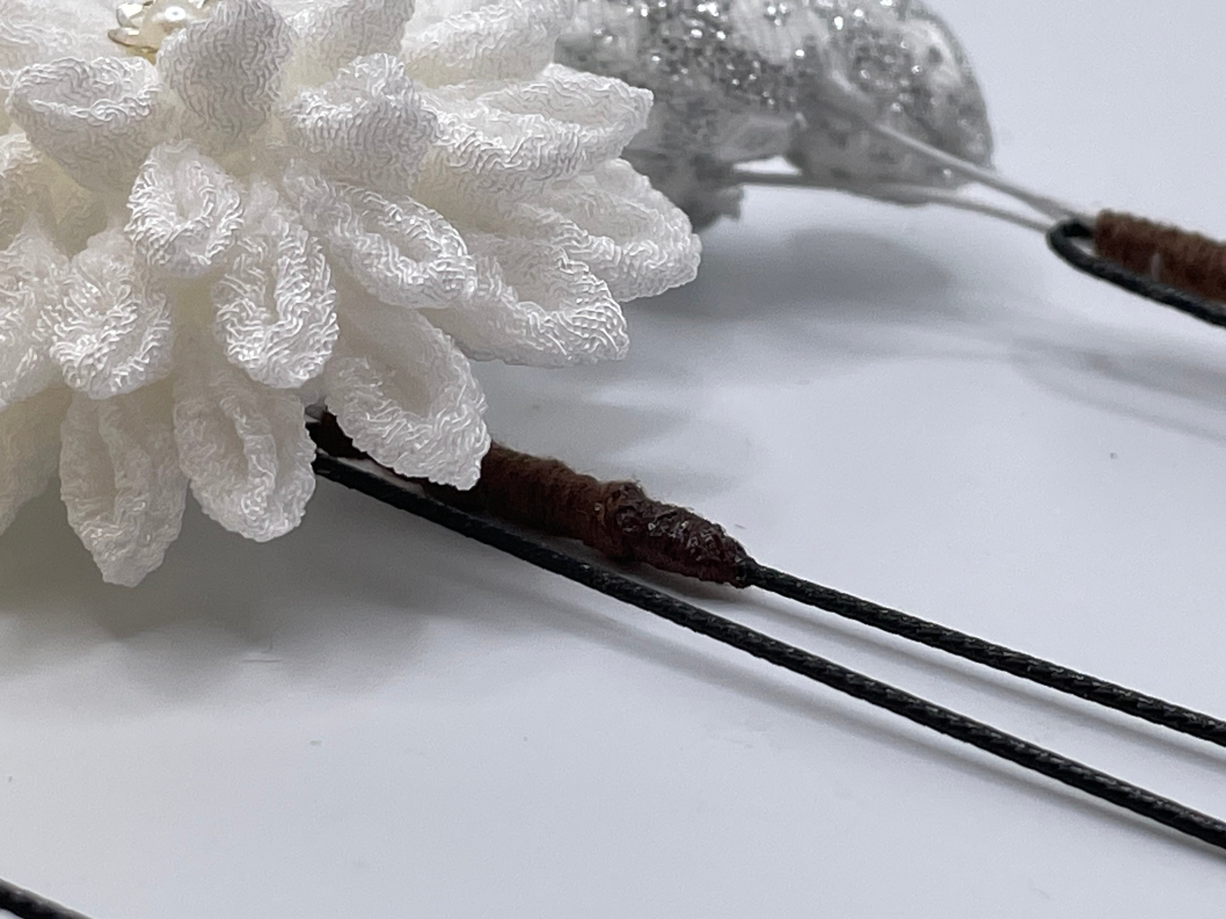 つまみ細工は繊細な為、水濡れや指で押したり摘んだりしますと変形・破損の恐れがありますのでご注意ください。