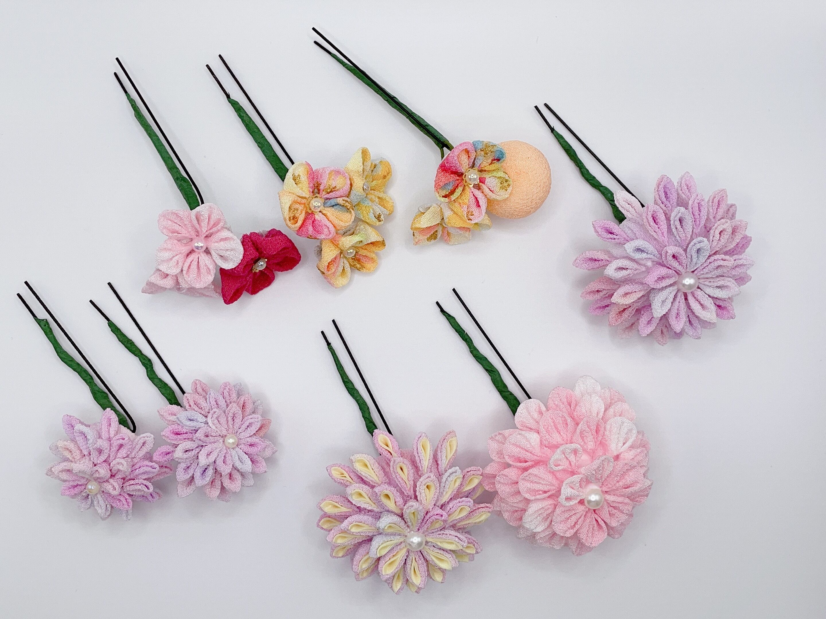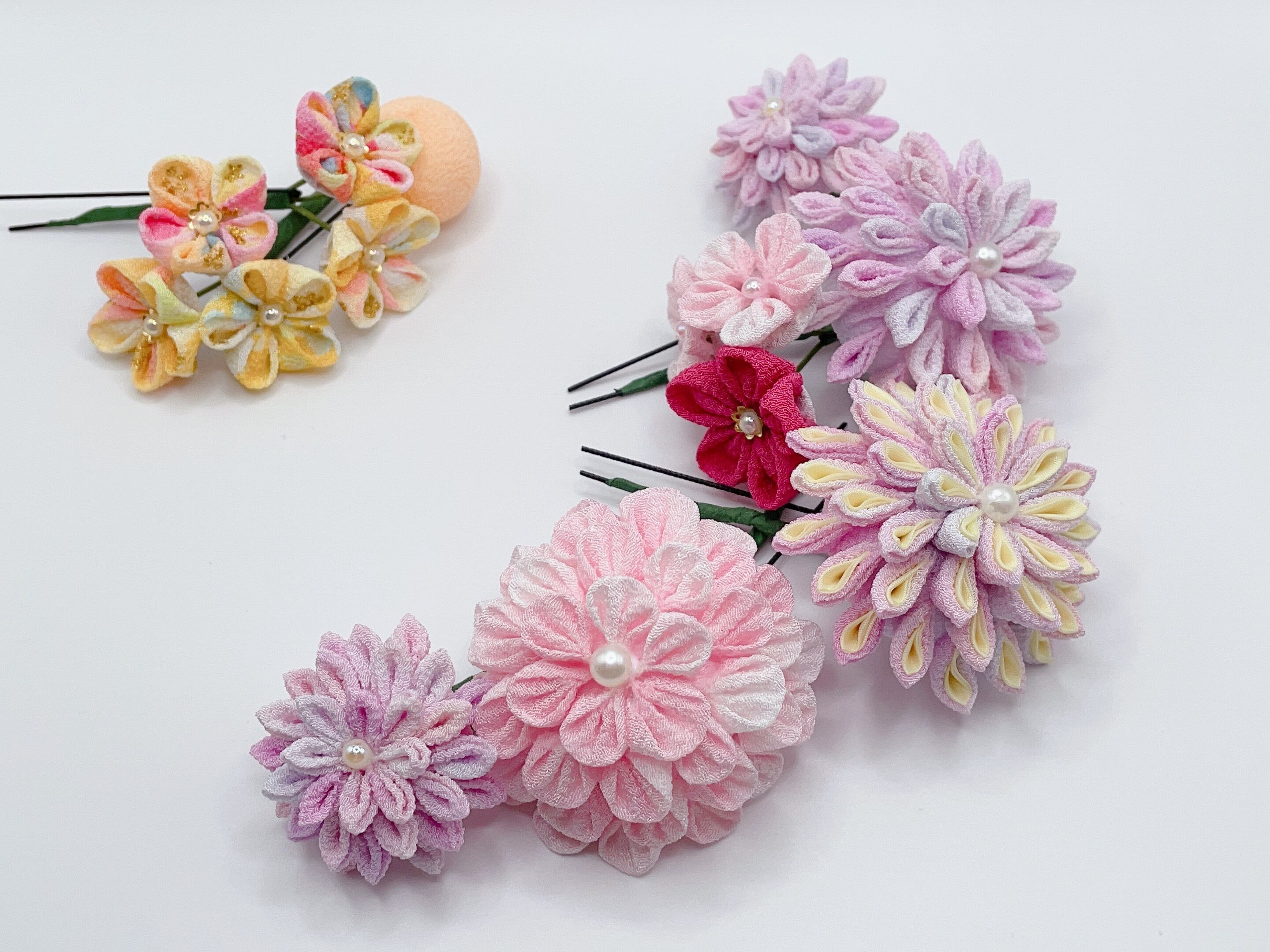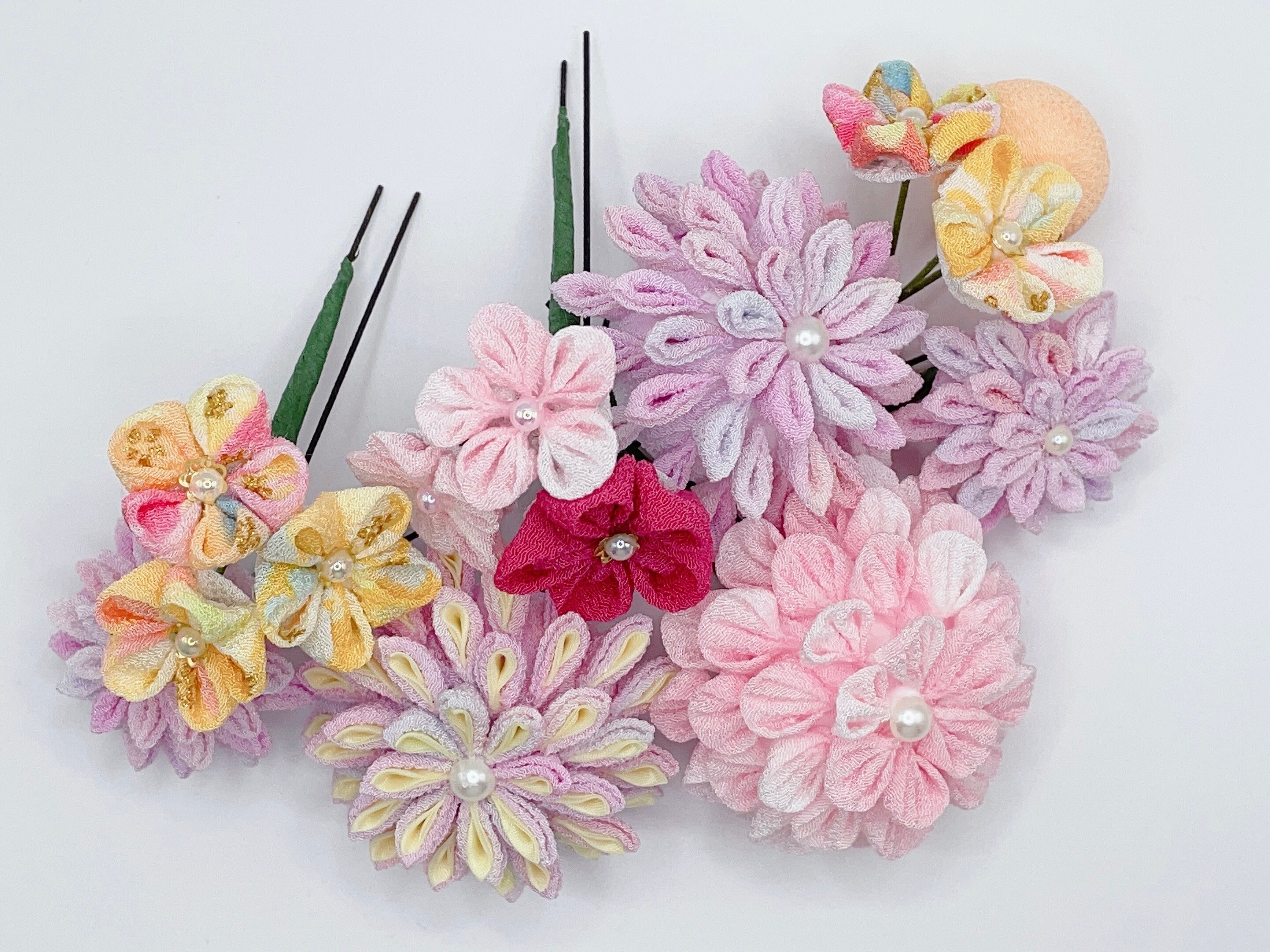 一越ちりめんを使用したつまみ細工の髪飾りです。