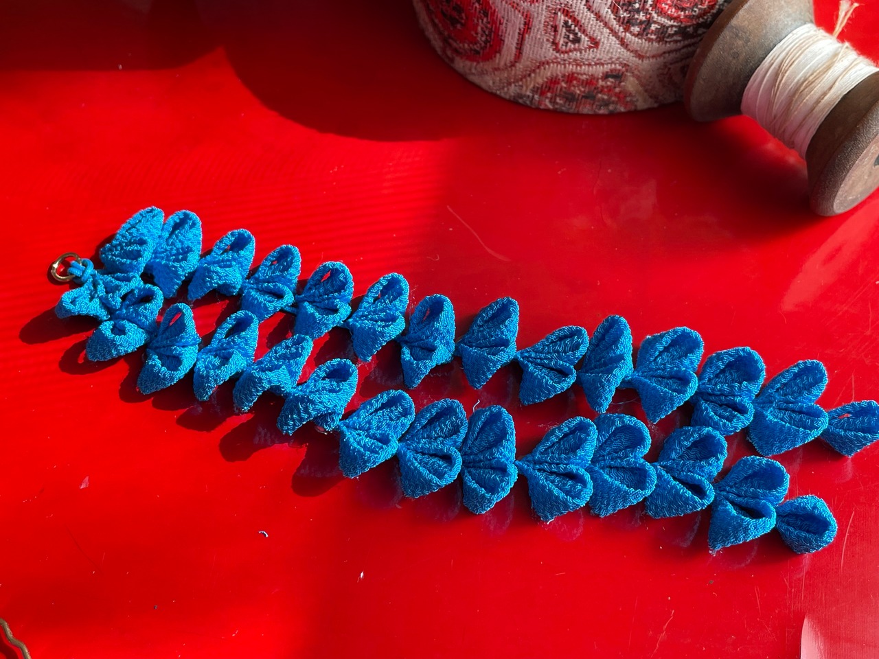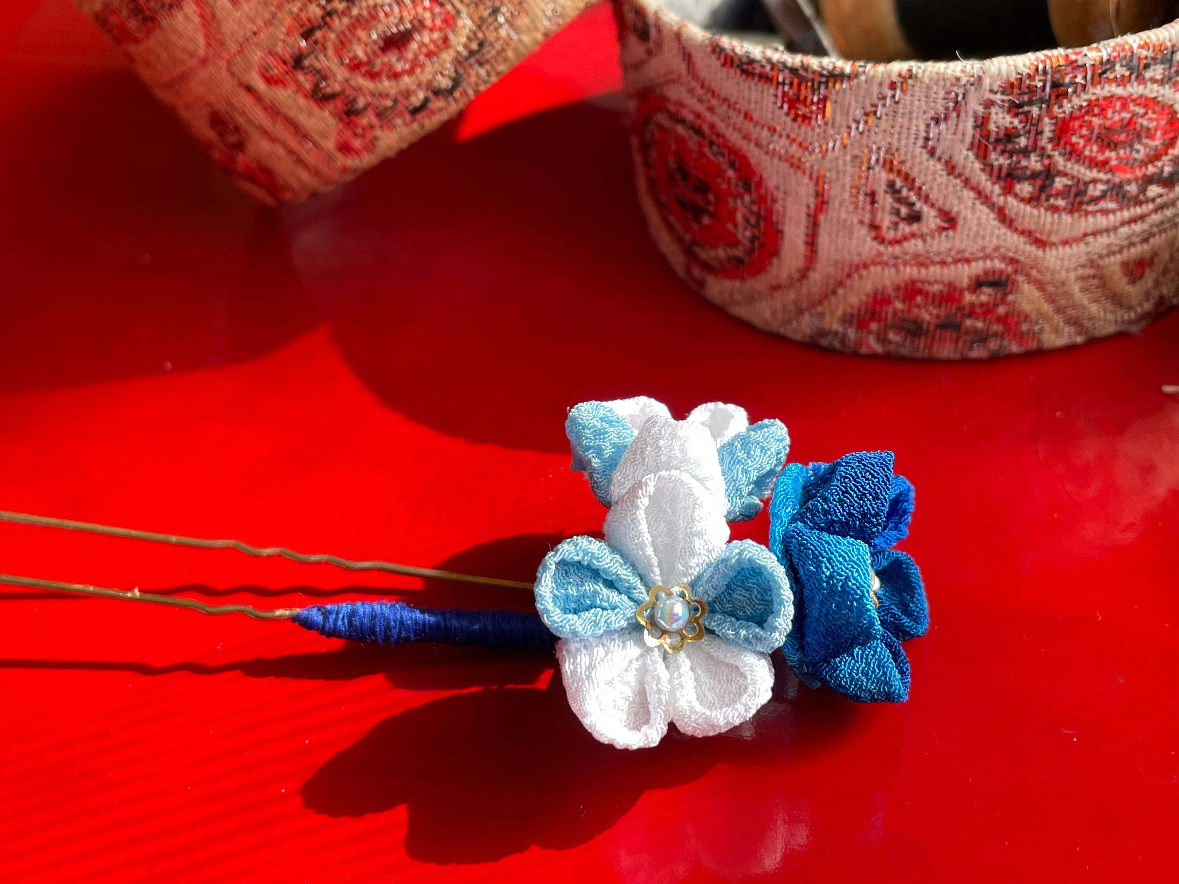 つまみ細工は繊細な為、水濡れや指で押したり摘んだりしますと変形・破損の恐れがありますのでご注意ください。